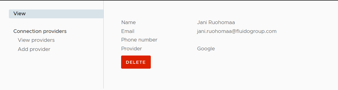 View logged in user account information and possibility to delete account