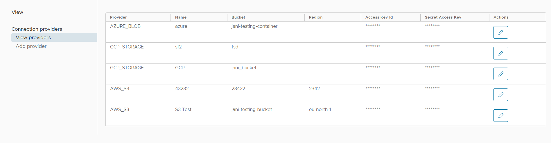 Example of adding S3 (AWS) connection provider to connect to S3 bucket. See screenshot for required data
